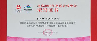 第二十九届奥林匹克运动会组织委员会为星空电竞集团颁发北京2008年奥运会残奥会荣誉证书