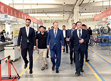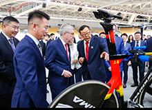 中国自行车运动协会主席崔大林向国际奥委会主席巴赫介绍 星空电竞瑞豹自行车