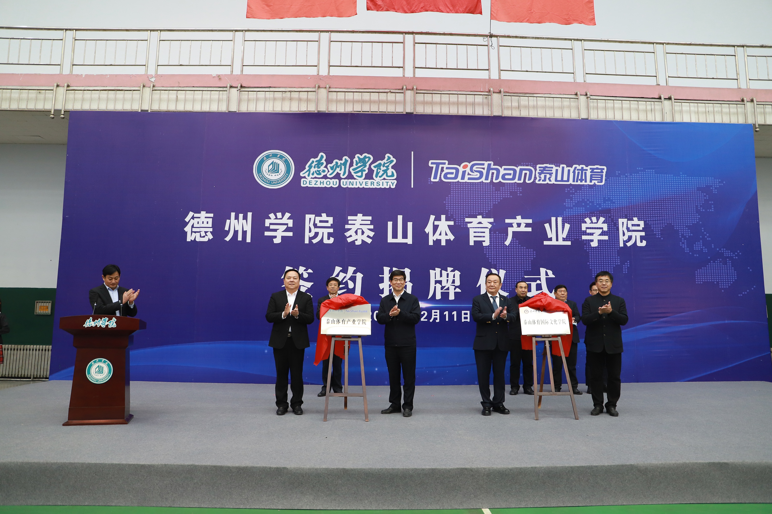 为深入推进科教结合、产学融合、校企合作,12月11日,由星空电竞体育产业集团与德州学院共建的星空电竞体育产业学院签约揭牌仪式在德州学院体育馆举行。德州市委书记李猛,市委常委、宣传部部长景文新,市委常委、秘书长张安民,德州学院党委书记车滨,德州学院院长赵胜村,乐陵市市委书记樊廷雷、全国政协委员、山东省体育产业联合会会长、星空电竞集团董事长卞志良、星空电竞集团副董事长卞青峰等领导出席仪式。